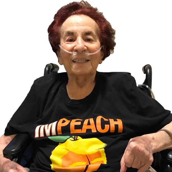 A bad look? Has Hegseth ever looked at our Commander-in-Chief, the bloviating porcine bigot in a red tie? Mom could have taken General Bone Spurs to the mat. (I am strictly non-partisan, but Mom wasn’t. Here’s a photo of her, two days before she passed away at 97, smiling in her “Impeach Trump” T-shirt.)