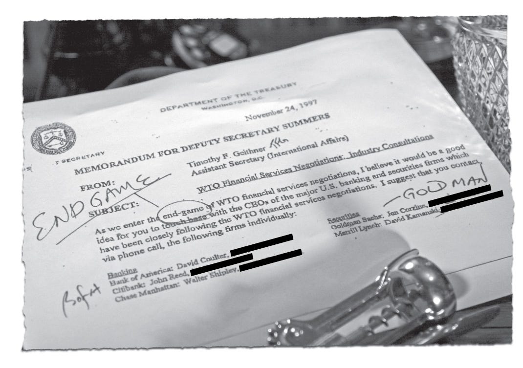 But the killer doc was a highly confidential note written in 1997 from Summer’s flunky, Timothy Geithner, who was then Ambassador to the World Trade Organization when Summers was Deputy Secretary of the Treasury under Bill Clinton.